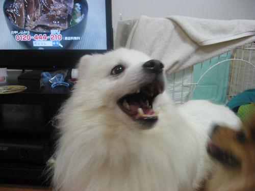 ギリギリまで我慢してから、威嚇のお口をだすにっきゅ。
