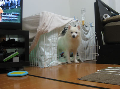 今まではサークルにタオルをかけて見えなくしなければ寝なかったのに。。。