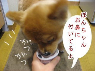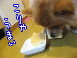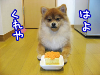 んで、そんな私の事は無視で、涎を垂らしながらケーキをガン見のぽん太くん。
