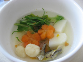 お次はメインディッシュの、鮭入りハンバーグステーキです。