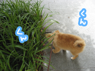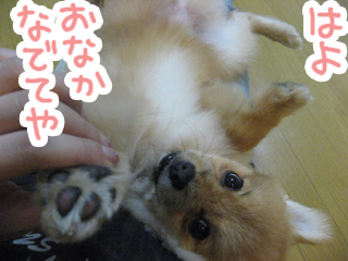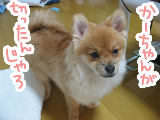 ↓ぽん太の毛がカーリーなのは、ゲーまみれになっったのを洗って、自然乾燥中の為です^^
